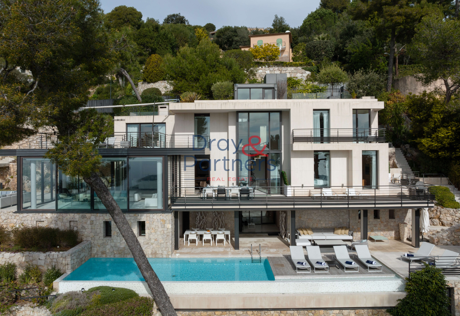 Une piscine de 12 m x 4 m, un pool house et 6 terrasses et balcons à différents niveaux, tous offrant une vue imprenable sur la baie.